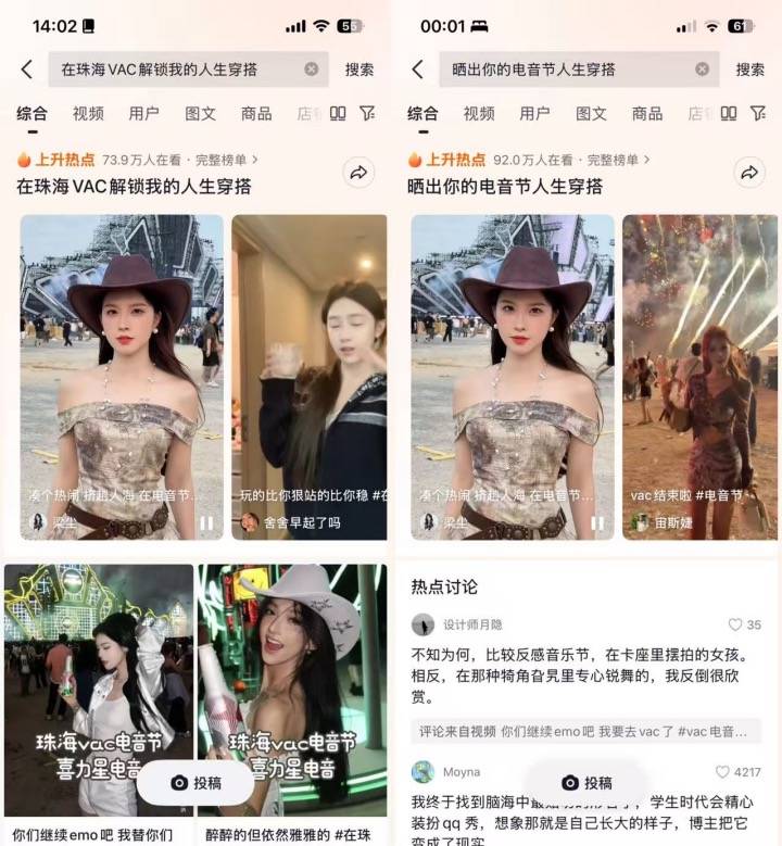 在太湖湾,达人们带话题#在太湖湾音乐节解锁假期氛围 ,产出7条万赞视频;在VAC,#在珠海VAC解锁我的人生穿搭 引爆站内模仿风潮,累计曝光超272万+。在这些视频中,喜力®星银®不仅是饮品,更是音乐节氛围的催化剂,见证着无数个友谊升温、陌生人间因音乐而相识的奇妙时刻。