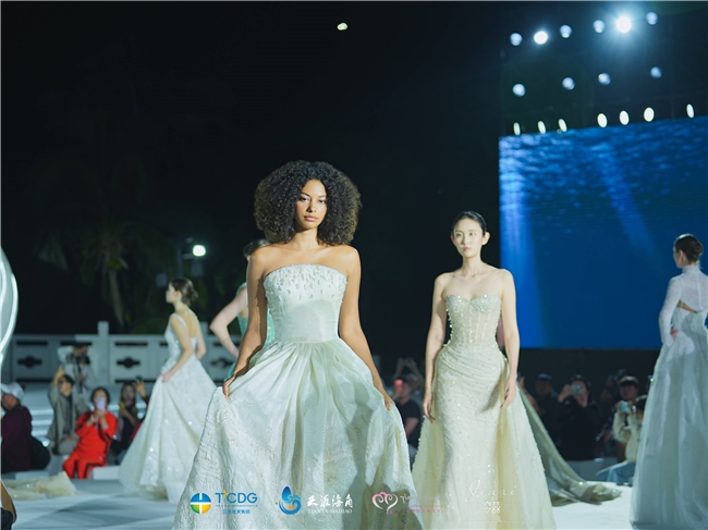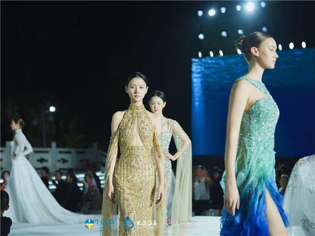 作为当晚的核心环节,本次“天涯时尚秀”力邀国际,婚纱礼服品牌TONYWARD进行专场发布。在璀璨灯光与轻柔海风的交织下,模特们身着奢华精致的,定制礼服款款而行,将品牌的匠心工艺与天涯海角的浪漫意境,融合,为现场嘉宾带来了一场震撼心灵的视觉盛宴,生动诠释了三亚作为“世界爱情之都”的时尚魅力与独特格调。