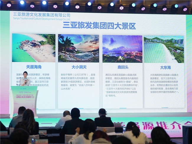 三亚旅发集团推荐官张宇则全面展示了集团旗下多元化核心文旅资源与产业布局。该集团坐拥天涯海角、大小洞天、鹿回头、大东海四大标杆景区,其中天涯海角与大小洞天作为国内知名婚纱蜜月旅拍胜地,已打造上百个网红打卡场景,深受新人青睐。围绕海域海湾资源开发,集团积极推进游船码头建设与运营,拓展内河生态游览、海上丝路主题游船等多元业态,持续丰富滨海旅游体验。此外,集团,打造“旅文·三亚总部港”综合体,构建“旅游+”产业集聚平台,实现文旅资源与多元产业的深度融合。