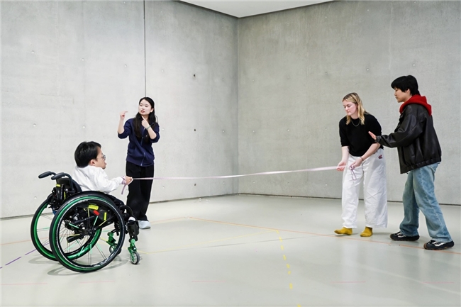 本届艺术节的亮点项目——BY ART MATTERS 天目里美术馆与英国文化教育协会、「无限艺术Unlimited」共同发起的“2x2艺术驻留:中英残障艺术家创意交流”,为公众打开了一扇通往残碍艺术创作核心的窗口。在29日的分享会上,中英两国残障艺术家黄特、翟进、克莱尔·亚当(Clare Adam)与莱斯利·霍华德(Lesley Howard)对谈创作心得,分享了如何将个人感受转化为独特的作品语言,探索以非语言沟通作为建立真实联结,以独特的身体叙事和巨大的戏剧张力打破残健之间隐形的墙。随后30日的两场工作坊与一场开放工作室活动则将这些思考化为可感的现场,让公众直接置身于共创现场,亲身感知艺术在包容性理念下拓展出的全新表达疆域,在动与静之间,重新寻回连结与表达的纯粹快乐;在身体、关系与结构的缝隙中,寻找属于自己的节奏;进一步反思并探索艺术实践中的残障理念。