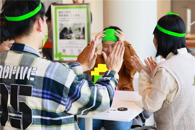 “艺起亮·无障碍融合艺术节”融合工作坊:感官桌游·三人成筑活动现场