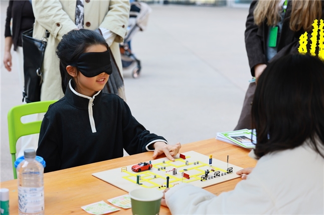 “艺起亮·无障碍融合艺术节”融合工作坊:微缩盲道迷宫挑战活动现场