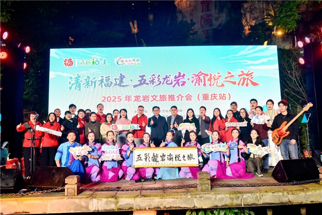 闽山闽水物华新,12月 1日,为深化渝闽两省文旅交流,进一步拓展重庆地区,客源市场,探索跨区域旅游发展路径,推动文旅资源融合。由龙岩市文化和旅游局主办的“清新福建·五彩龙岩·渝悦之旅 ”2025年龙岩文旅推介会在重庆洪崖洞盛大启幕。龙岩市文化和旅游局领导、重庆市渝中区文化和旅游发展委员会领导、重庆市福建龙岩商会会长以及龙岩各县(市、区)文旅业务负责人、,文旅企业代表、旅行商代表及媒体记者、旅游达人等出席活动现场。