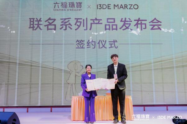 (图:六福集团执行董事兼营运总裁王巧阳女士(左)、13D MARZO品牌全球销售总监侯亦文先生(右)举行签约仪式)