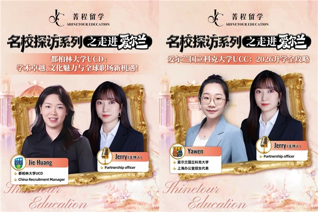 从UCD到UCC、从格里菲斯学院到都柏林城市大学,“菁程名校探访”系列IP,热门留学目的地爱尔兰,已通过四场直播帮助广大学子直接与四所爱尔兰排名前列的名校交流。“这是院校和学生双赢的事情,而我们非常热衷于为大家搭建这个平台,起到桥梁作用,帮学生明确方向,帮院校优选符合条件的学生”。菁程留学战略发展负责任Jerry如是说。菁程名校探访系列之走进爱尔兰,不仅呈现了爱尔兰高等教育的多元面貌,更体现出国际教育服务向专业化、精细化发展的趋势。四所名校囊括了爱尔兰知名学府,研究型国立大学、应用导向型院校、排名领先级院校全覆盖,多维呈现爱尔兰高等教育体系的整体结构与多元路径,为不同背景学生提供更具针对性的升学参考。菁程留学“名校探访系列”IP尝试打破信息壁垒,通过引入院校官方视角与系统化解读,帮助学生在复杂的升学信息中建立清晰认知,推动留学选择回归理性与长期发展。