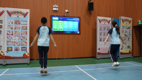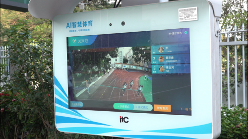 在操场周围,itc智慧AI体育系统格外引人注目。其不仅整合了丰富的专业体育课程资源,涵盖标准化动作示范指引、多人参与互动锻炼项目等;还支持实时播报使用者的成绩。有学生表示,“这个机器在每一圈跑完都会自动报时,可以让自己对于速度掌握更加准确”。通过智慧化应用模式,有效激发学生运动兴趣,实现“学会、勤练、常赛”体育教学目标。
