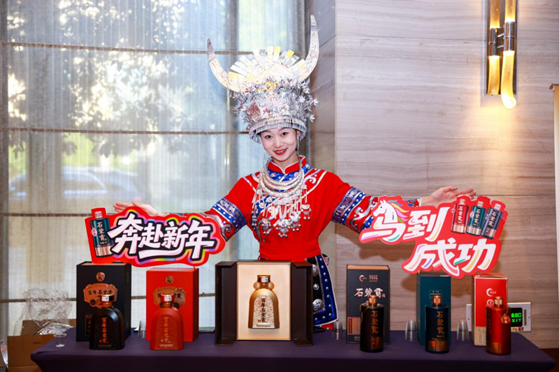 年会现场,石荣霄展位大气庄重,酒香氤氲间,引来众多与会领导、嘉宾与乡贤驻足流连。一杯醇酿,不仅是风土的凝结,更成为连接故土情怀、探讨商业机遇的温暖媒介。