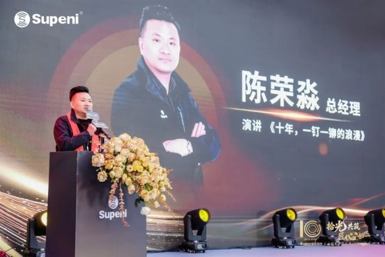 感恩同行,共赢未来。Supeni 苏柏瑞 大客户经理刘文致辞感恩各位供应商与客户十年相伴!市场内卷之下,盼与大家共筑品质、高效交付、联动服务、协同定价,携手破局,以十周年为新起点,共创辉煌,共赴下一个黄金十年!