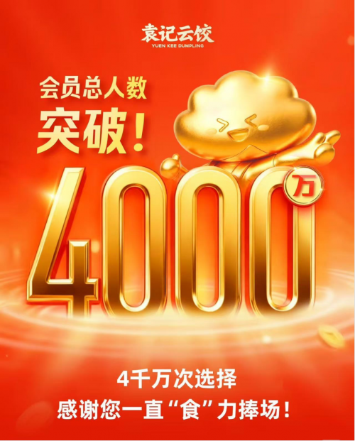 近日,知名餐饮品牌袁记云饺宣布其会员规模正式突破4000万大关。令人关注的是,这一数字距离今年5月突破3000万仅过去半年时间。在流量促销泛滥、短期营销充斥市场的今天,袁记云饺并未依靠“花式营销”引流,而是通过一套务实、有温度的会员服务体系,实现了高质量的用户增长与品牌忠诚度的双重提升。这背后,究竟藏着怎样的运营逻辑?