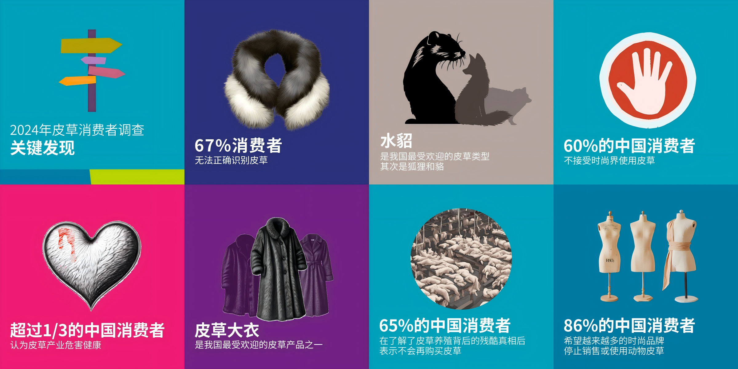最令人鼓舞的数据在于,65%的消费者在了解皮草养殖背后的残酷真相及环境代价后,表示不会再购买皮草。更有86%的消费者希望时尚品牌停止销售或使用动物皮草。这表明,持续的公众教育与透明的信息披露是推动消费端改变的关键。