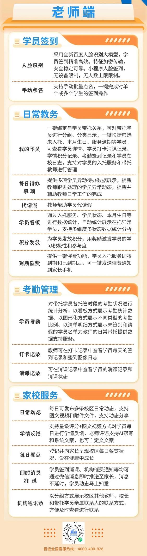 教师端:人脸签到、待办事项、学情反馈、日常动态、代请假等;
