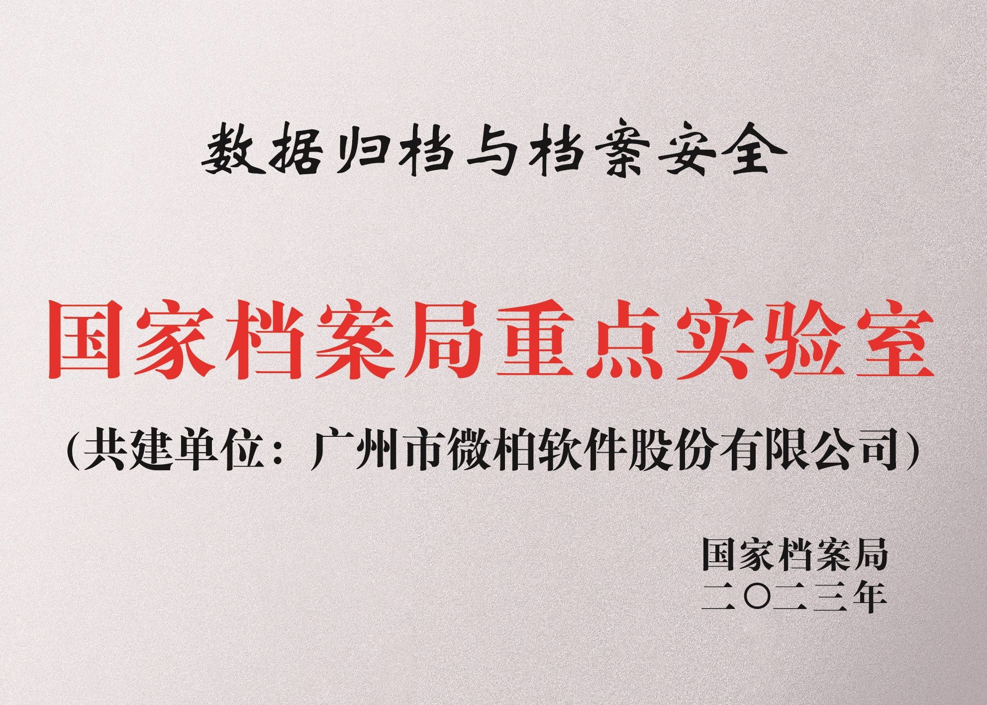 2023年,微柏软件联合中山大学、广东省档案馆、广州市城市建设档案馆等单位共建“数据归档与档案安全国家档案局,实验室”。