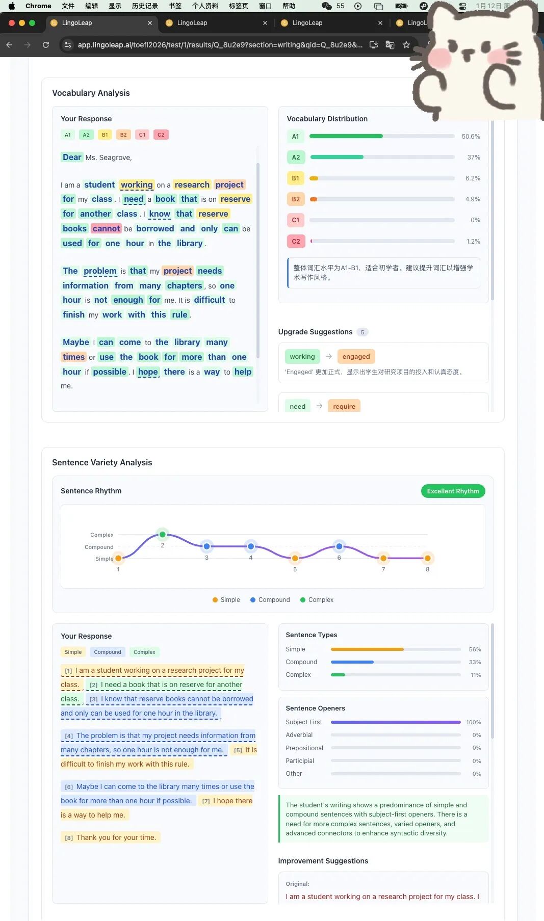 图:Lingoleap 口语部分批改结果
