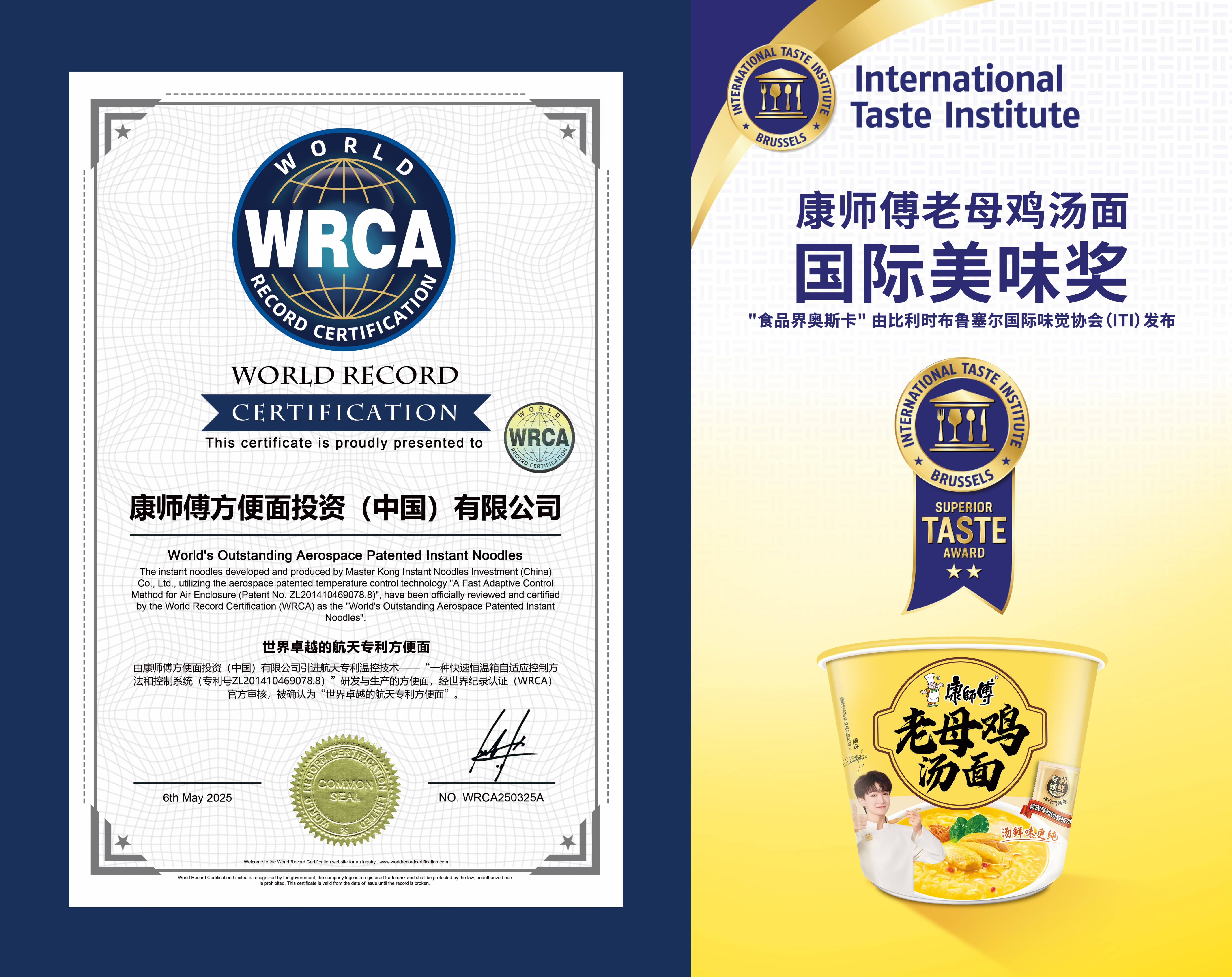 WRCA认证“世界,的航天专利方便面”\老母鸡汤面获得国际美味奖