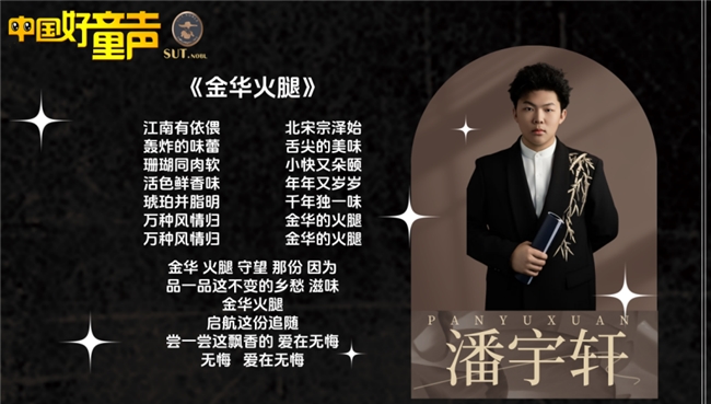 《金华火腿》的歌词以“两头乌猪”“冬腿”等非遗技艺关键词为线索,搭配轻快活泼的曲风,让听众在歌声中了解火腿的腌制工艺与百年传承。潘宇轩清澈透亮的童声,将传统美食的鲜活故事娓娓道来,评委团评价其“用少年视角诠释非遗文化,既有传唱度又有文化深度”。据了解,该作品自去年发布以来,已在多个少儿音乐平台累计播放量破百万,更入选了“非遗进校园”活动推荐曲目。
