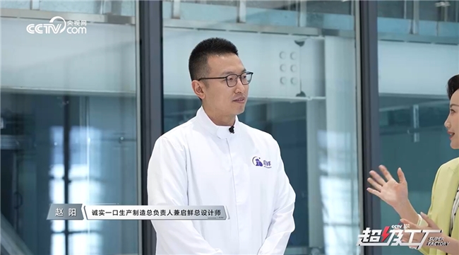 随后,赵阳带领摄制组深入工厂核心区域,从原料低温保鲜系统、精准营养配方实验室,到全自动化生产线和严苛的品控环节,生动诠释了每个生产流程如何践行“鲜”字承诺。在参观过程中,他详细介绍了启鲜自主设计研发的多种工艺,让节目嘉宾和观众直观感受到诚实一口对产品品质的重视和对“鲜”的,追求。