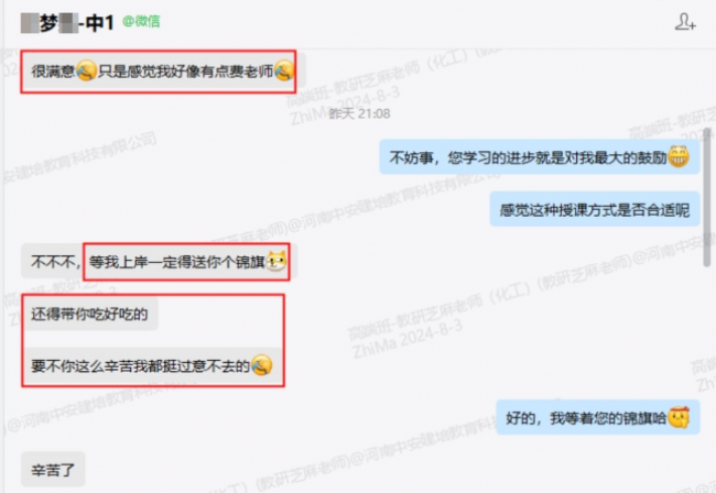 这份“课前有了解、课中有指导、课后有巩固、考前有护航”的全周期服务,正是河南中安建培尊享护航班“双师伴学”机制的真实体现——讲师专注专业知识输出,夯实学员理论基础;教研老师聚焦学习全流程管理,精准化解学员学习痛点,用专业与细心,让枯燥的备考之路多了几分温度与底气。付出终有回响,小梦同学按照规划,在2024年通过法规和技术两门科目,2025年通过管理和化工,最终顺利通过注册安全工程师考试。
