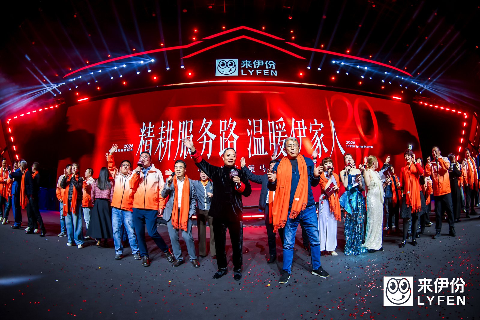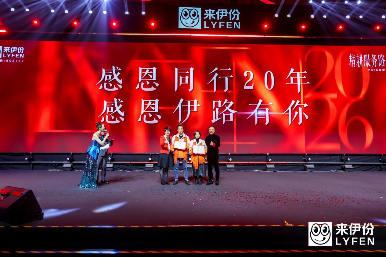 2026年2月24日正月初八,来伊份2026新春团拜会在上海张江科学会堂举行,这是企业围绕“家文化”举办团拜会的第二十五个年头。本次活动以“精耕服务路,温暖伊家人”为主题,500余位全国各地的员工、加盟商、供应商代表现场参会,活动全程直播,线上合作伙伴同步参与,各方齐聚总结发展成果、表彰先进典型,投传2026年企业核心经营发展战略。