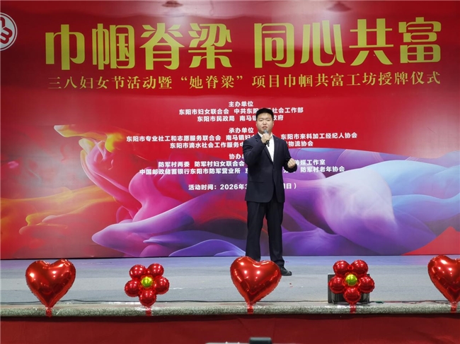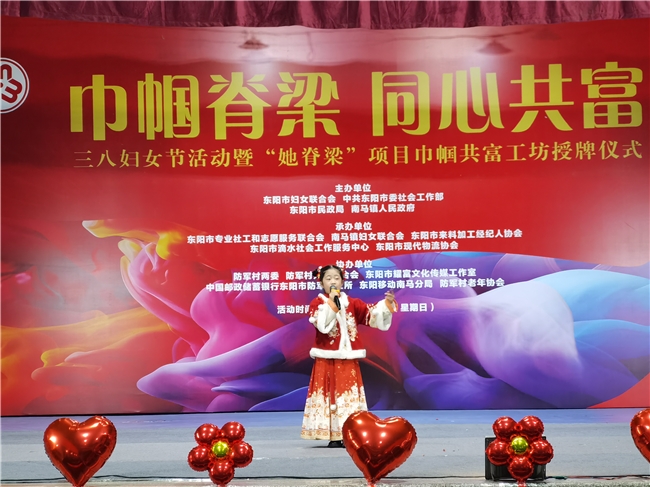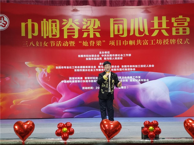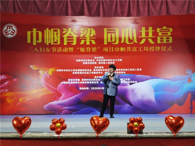 3月8日晚,“巾帼脊梁 同心共富”三八妇女节活动暨“她脊梁”项目巾帼共富工坊授牌仪式在东阳市南马镇防军村文化礼堂圆满举行。本场活动由东阳市妇女联合会、中共东阳市委社会工作部、东阳市民政局、南马镇人民政府联合主办,以文艺赋能共富、以歌声传递温暖。东阳市勒荣多吉原创音乐工作室精心推选4位优秀学员亮相公益舞台,四首作品风格鲜明、情感真挚,成为整场晚会最动人、最亮眼的风景,赢得全场领导与观众高度赞誉。