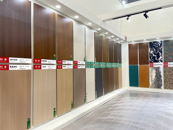 在郑州亮相的全效抗菌茶香板,搭载了行业领先的植萃抗菌技术,以天然茶多酚为核心,实现了抗菌、防霉、抗病毒、净醛、释香五效合一,为健康家居提供了高标准解决方案。而在石家庄展出的传奇系列,则整合了国际,饰面工艺,凭借同步对纹的逼真触感和潮流色系,精准契合了年轻消费群体对“高颜值家居”的,追求。两大系列产品的亮相,再次证明了鹏鸿在高端板材定制领域的引领地位。