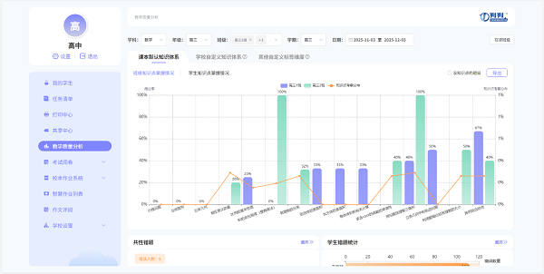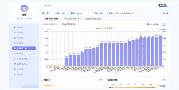 每次作业扫完,系统自动生成一份报告:哪道题错的人多、哪个知识点全班都没吃透、哪个学生哪个板块有问题——全都列得清清楚楚。这意味着老师拿到的不再是一堆批改完的作业本,而是一份清晰的数据驱动的教学参考。 以前讲卷子,老师凭感觉讲:这道题错得多,讲讲;那道题重要,讲讲。现在不一样了,数据告诉你,这节课该讲什么。