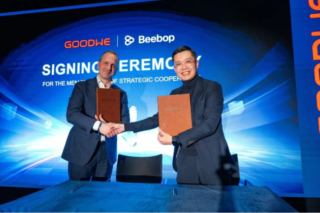 发布会现场,固德威与 BeeBop、Frank Energie、Tibber 等企业签署战略合作协议,将储能技术与虚拟电厂服务结合,助力家庭应对动态电价,加速智慧能源普及。