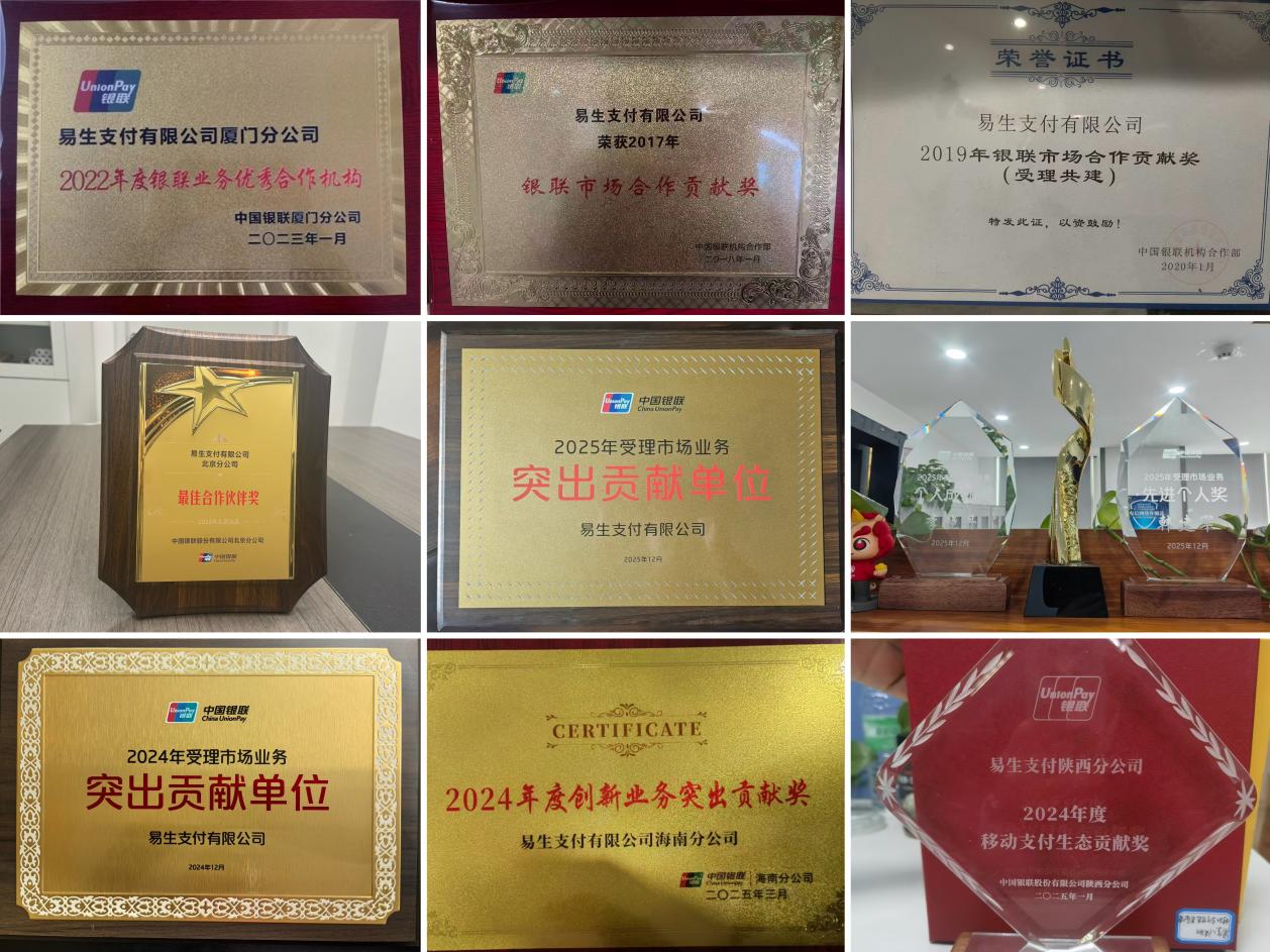 凭借扎实的区域深耕成果,易生支付多年来屡获地方银联肯定,2026开年先后斩获中国银联吉林分公司“突出贡献奖”、北京分公司“最佳合作伙伴奖”等多项荣誉。跨区域、多层级的表彰加持,充分验证了易生支付“全国联动、区域精耕”战略的落地成效,也彰显了其全域服务的过硬能力。