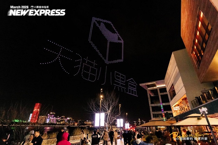 这一空间不仅是一场展览,更像一座赛车文化超级体验场。观众在这里体验、拍摄、分享,赛车相关内容也因此在社交网络中迅速传播。与此同时,天猫小黑盒还通过无人机编队表演和上海公交车身广告,将F1视觉符号带入城市公共空间,让赛车文化持续扩散。由此,一个融合赛事文化 × 城市体验 × 社交内容生产的超级体验空间逐渐形成。