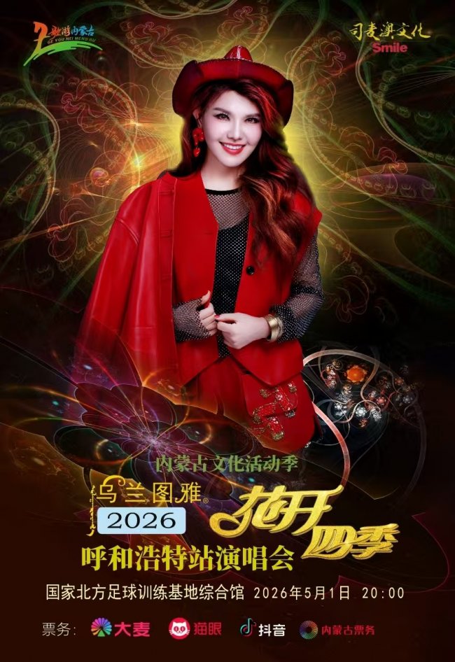 草长莺飞五月天,清风送暖润青城。五一假期,邂逅惊喜。内蒙古,呼和浩特早已为你备好专属浪漫——5月1日,,歌手、音乐唱作人乌兰图雅将携“花开四季”演唱会,在国家北方足球训练基地综合馆温情开唱。