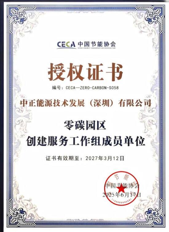 中正能源荣获中国节能协会首批“零碳园区创建服务工作组成员单位”