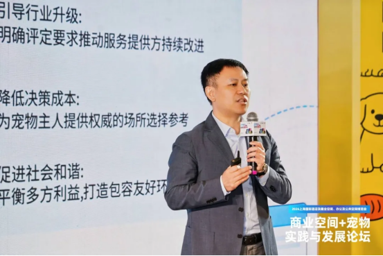 围绕标准内核,宠物产业新创投研习院发起人、宠它至尚董事长郝波在现场进行了系统解读。他指出,随着宠物逐步进入酒店、商业、办公及文旅空间,“能否进入”已不再构成门槛,真正的关键在于如何在开放基础上实现有序管理与优质体验。