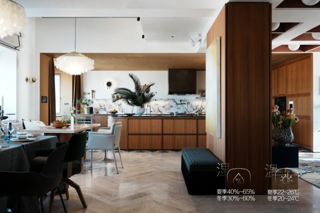 如果说“隐”是这份合作的美学底色,那“,定制”便是其核心实力。陈暄的私宅有着鲜明的个性化需求:需适配北京的气候特质、要守护家中藏品、兼顾顶层女儿房的舒适、解决开放式厨房的痛点,A.O.史密斯团队以深度共创的态度,量身定制了专属解决方案,将真恒温、恒湿、恒氧、恒洁、恒静的“好风好水”精准适配生活场景。