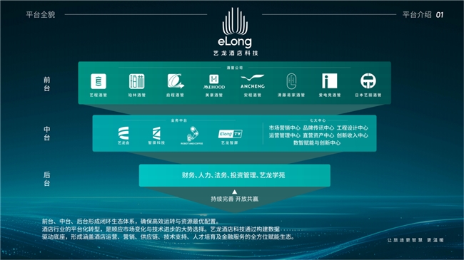 艺龙酒店科技创新打造了前、中、后台三位一体的组织架构,形成高度融合的生态系统。2026年,艺龙酒店科技将以“大小生态融合赋能”作为主线,全面释放产业赋能平台的生态价值,通过品牌、技术、营销、会员、运营、采购、人才、金融八大赋能体系,推动住宿产业向新发展。