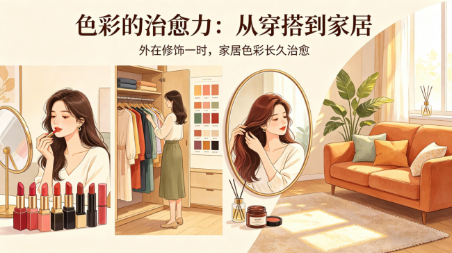 我们认真研究口红色号的冷暖调,纠结穿搭服饰的配色搭配,琢磨发色与五官的适配度,拼命用合适的色彩修饰自己、取悦自己。但大多数人都忽略了一件事:穿搭色彩决定外在气质,家居色彩,才是长久治愈情绪的核心。