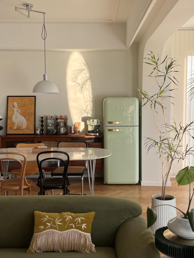 各类复古系家装主打时光肌理、层次氛围感塑造,偏爱醇厚有底蕴的复古原生色调,自带复古怀旧空间底蕴。适配搭配复古醇厚主色、文艺暖调复古色系,贴合中古软装、复古柜体全套家装美学。经典复古撞色贴合艺术家装设计逻辑,赋能家电软装属性,跳出单一实用功能,加持全屋立体复古格调,轻松烘托沉浸式怀旧居家艺术氛围。