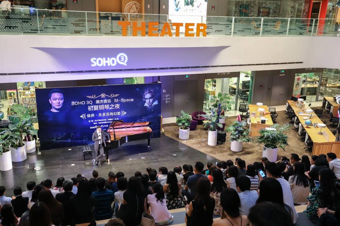 据介绍,SOHO 3Q是SOHO中国推出的移动时代的共享办公,不仅仅带来设计前卫的办公空间,更带来全新的生活方式。目前,SOHO 3Q已成为北京、上海最大的共享办公空间,目前在北京上海核心地段拥有18个中心。SOHO 3Q里来自各行各业的租户激发了社区中的蓬勃活力,在这里每年都会举办上千场活动。就像本次的室内音乐会,在繁忙的都市生活中为观众带来心灵的宁静。