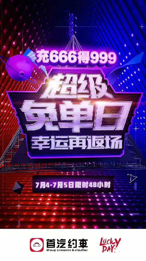 因此,这次充返活动的主题是“超级免单日——幸运再返场”,是6月“Lucky Day”活动的延续,也是上个月首汽约车融资信息爆出之后的一系列活动之一。拿到融资后的首汽约车也真是豪气十足,免单日刚刚结束,充返活动就接连上演,也让我们猜测首汽约车未来将有更多的动作,将给网约车行业注入新的活力。