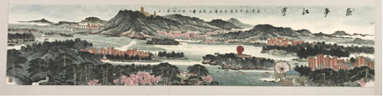 在庆祝建党96周年及党的十九大召开之际,山水画家周奇峰为南京市江宁区委宣传部创作了5米*1.5米山水大幅作品《筑梦江宁》。