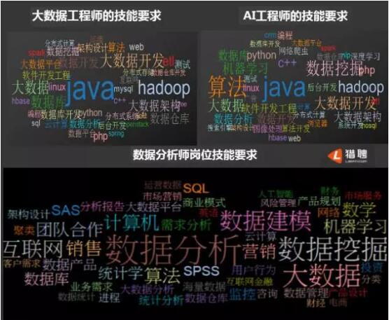 大数据工程师和AI工程师都要求从业者具备java、大数据开发、大数据结构、软件开发工程等技术背景。值得一提的是,AI工程师还需要具备机器学习的能力。数据分析师除了需要具备数据分析、数据挖掘和机器学习等能力外,还需要具备市场营销、市场服务、数据产品等方面的知识和技能。