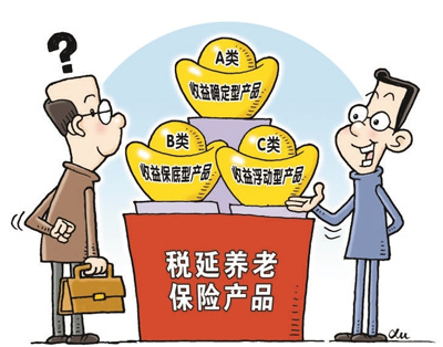 按照积累期养老资金收益类型的不同,税延养老保险产品包括收益确定型、收益保底型、收益浮动型三类四款产品。一是收益确定型产品(A类),指在积累期提供确定收益率(年复利)的产品;二是收益保底型产品(B类),指在积累期提供保底收益率(年复利),同时可根据投资情况提供额外收益的产品,可细分为每月结算收益的产品(B1款)和每季度结算收益的产品(B2款);三是收益浮动型产品(C类),指在积累期按照实际投资情况结算收益的产品。