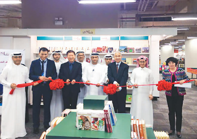 2017年5月,海湾地区第一家“中国书架”在阿联酋Jadir书店揭幕(右一为荆孝敏)。 |