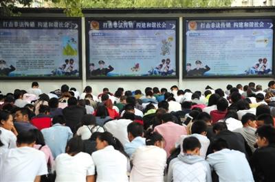 9月14日,燕郊,工作人员将非法传销人员集中起来,分批上反洗脑教育课,教育后,传销人员要签不再参与传销的承诺书。A12-A13版摄影/新京报记者 王贵彬
