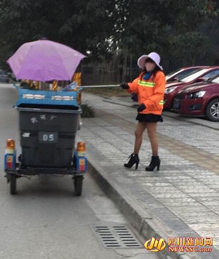 “我第一次见到环卫工穿得这么时髦上班的,感到很好奇,所以就顺手拍下传到麻辣社区上了。”四川新闻网联系到拍摄图片的网友“刘小邪”。据了解,当天下午5点过,他路过庐山路与渭河路交会处附近,看到一位穿着时尚的环卫女工正在打扫清洁,便拍了下来并传到网上,称为“德阳犀利环卫姐。好潮流。”