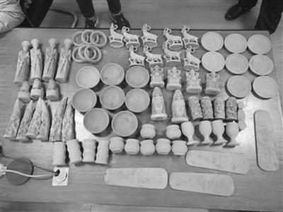 嫌疑人带来的大箱子里发现的假古董。