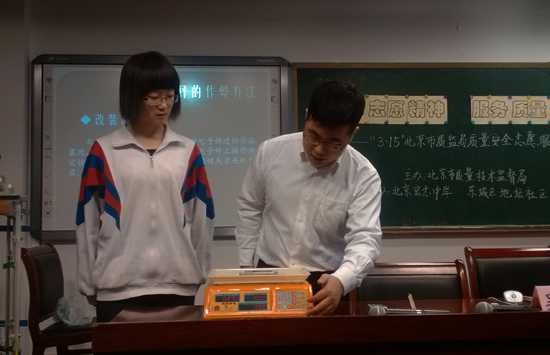 北京市质监局计量监督处工作人员吴俊彪在今日的质量安全知识进社区、进学校志愿服务活动中,向消费者介绍了不法商贩的4种常见缺斤短两行为。第一种是故意不把秤盘放在秤杆上,等消费者选购的物品一起放上秤杆,把秤盘的重量也算在消费者购买里;第二种是称量物品时,故意用身体遮挡电子显示屏,随意报购买金额;第三种是在电子秤内部做手脚,安装遥控装置,随意调档加重量,增加消费者的购买金额。第四种是改装电子秤内部芯片,重新改写电子秤程序,改变重量标准,增加重量。