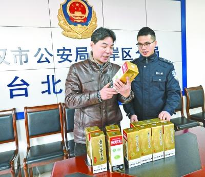 江岸警方追缴回来的飞天茅台酒返还失主 记者金振强 摄