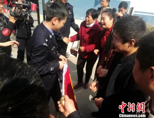 3月13日,李家夫妇、亲属到新密警队表达谢意。刘鹏 摄