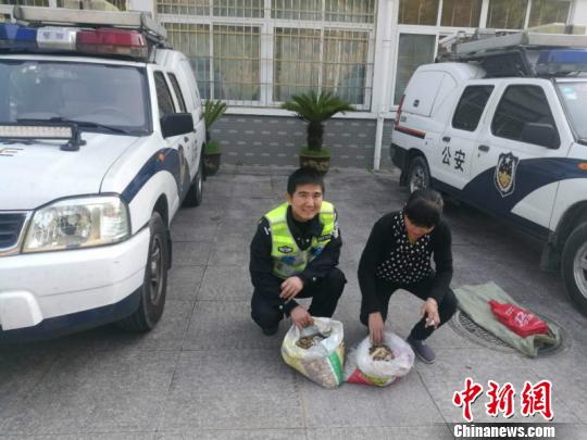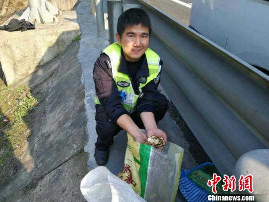 浙江丽水交警陪捡近3小时捡完 警方提供
