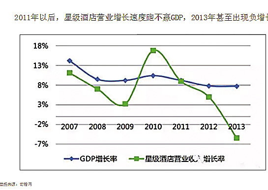 2011年以后,,酒店营业增长速度跑不赢GDP