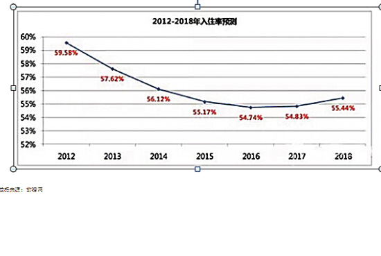 近日,德勤中国合伙人金建在中国饭店全球论坛上透露,预计中国饭店业入住率将持续下跌,直到2017年才有望触底反弹。此外,从2010-2013年,酒店年度平均资本化率分别为:4.00,3.97,3.11,1.59。这意味着投资高,酒店的回报年限从25年,一直降到62年。